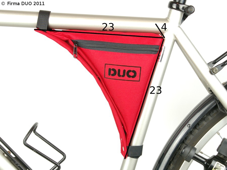 Torba pod ramę, do której zmieszczą się najpotrzebniejsze narzędzia i części zapasowe, w przypadku, gdy nie można zamontować torby pod siodło, np. używając dużej sakwy trójkomorowej, jak Go!Travel Expedition 2+1. Może również uzupełnić przestrzeń na dodatkowe akcesoria. Mocowana za pomocą 2 rzepów, a kształt utrzymuje dzięki solidnej, plastikowej konstrukcji wewnętrznej. Wygląda zdecydowanie lepiej niż trójkąty mocowane trzema rzepami.
