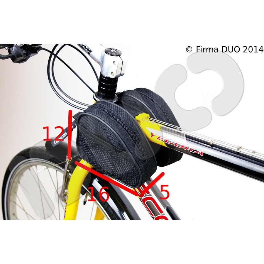 Mała torba pod ramę, w której przewieziesz narzędzia, klucze, dokumenty, itd. Może również uzupełniać torbę pod siodło. Mocowana na rzepa.