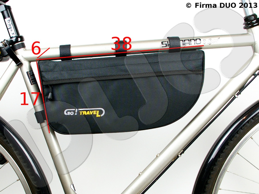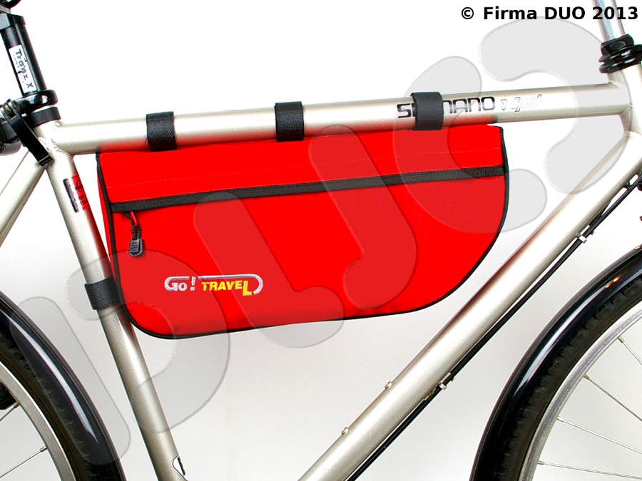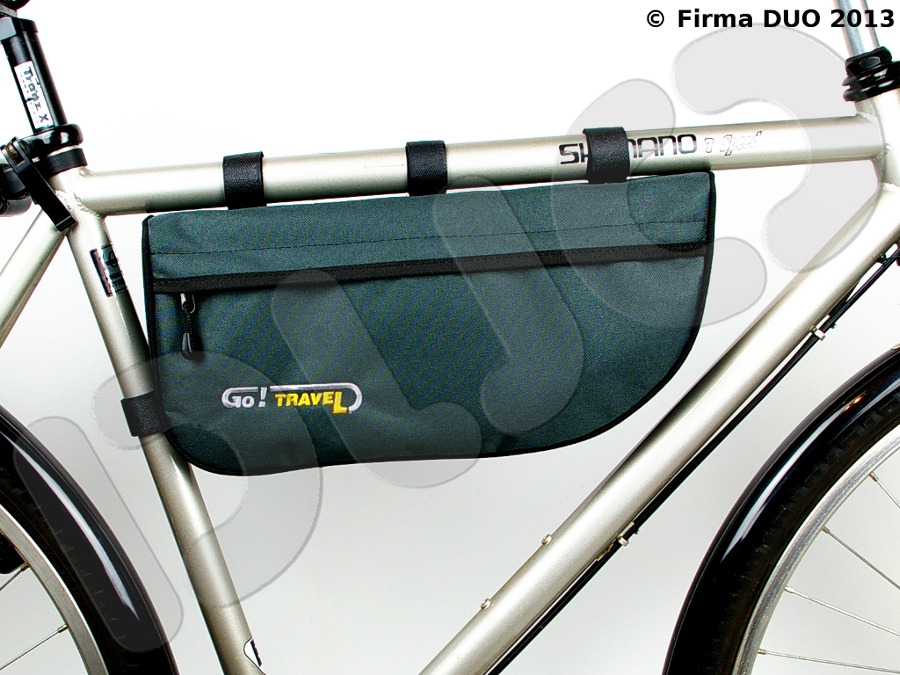 Duża torba pod ramę, do której zmieszczą się wszystkie potrzebne narzędzia i części zapasowe, w przypadku, gdy nie można zamontować torby pod siodło, np. używając dużej sakwy trójkomorowej, jak Go!Travel Expedition 2+1. Może również uzupełnić przestrzeń na dodatkowe akcesoria. Mocowana za pomocą 5 rzepów, ta lekka torba spełni oczekiwania tych rowerzystów, którzy chcą mieć wszystko pod ręką.